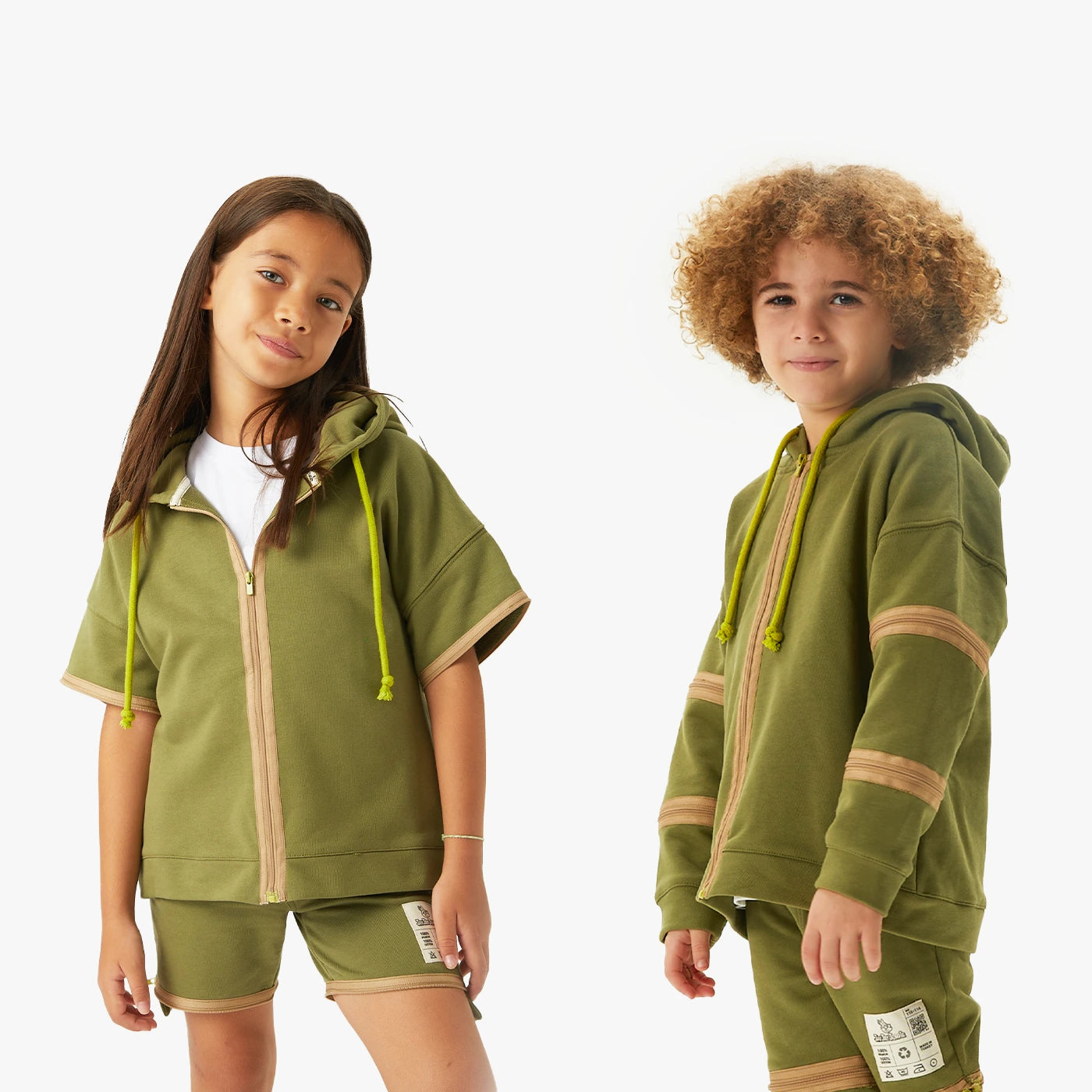 Kıyafetlerimiz, özel bağlantı sistemleriyle farklı tarzlara dönüştürülebilir. Pantolonun uzunluğunu ayarlayabilir, elbisenin kol detayını değiştirebilir veya aksesuarları yenileyebilirsiniz. JayJayJumpie, çocukların hayal gücünü özgürce yaşamasına imkân tanırken, sürdürülebilirliği de her tasarıma yansıtır.