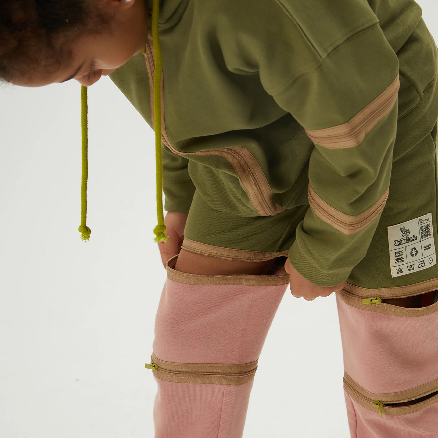Modüler fermuar ve aksesuar sistemimiz, kıyafetlerin diz, dirsek gibi bölümlerini kolayca değiştirebilmenizi sağlar. Yıpranan veya değişiklik yapmak istediğiniz parçayı yenisiyle değiştirerek ürünü uzun süre kullanabilirsiniz. Bu sayede hem çocuklar büyürken farklı tasarımları deneyimler hem de gereksiz tüketimin önüne geçerek doğaya katkıda bulunursunuz.